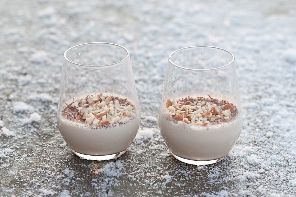 Och så här i juletid, vad passar bättre än att bjuda på glöggpannacotta? När det kommer till glögg med låg alkoholhalt är Dufvenkrooks glögg med chili och choklad min absoluta favorit och därför fick den agera smaksättning. För att bryta av allt det söta toppade jag min dessert med rostad mandel och finriven mörk choklad. Självklart kan du använda den glögg du gillar bäst!
