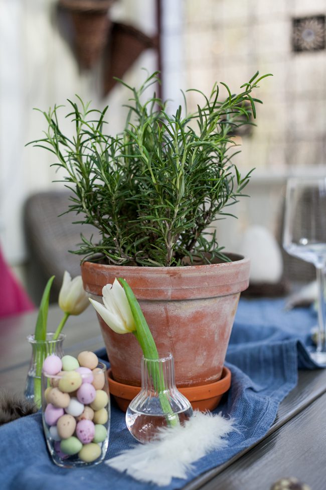 - Sätt örter i fina krukor och ställ på bordet. Det blir lite rustikt och är en fin kontrast till allt det påskiga.