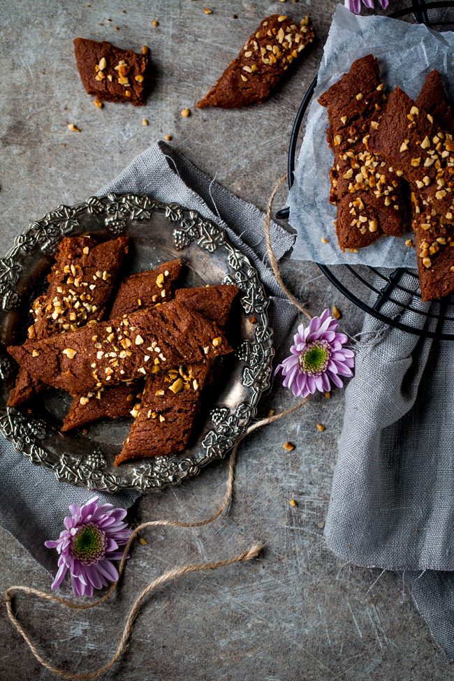 Jag strödde lite hackade hasselnötter över mina chokladsnittar, men du kan använda andra nötter eller varför inte pärlsocker om du vill.