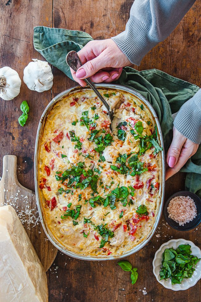 Hur bra låter inte det? Anledningen är att du liksom inte behöver kunna laga mat. Alla smaker finns redan där. I den grillade paprikan, i färskosten, i basilikan och i parmesanen. Allt läggs i en ugnsform och 30 minuter senare har du en drömgod middag klar. Utan större ansträngning alls.