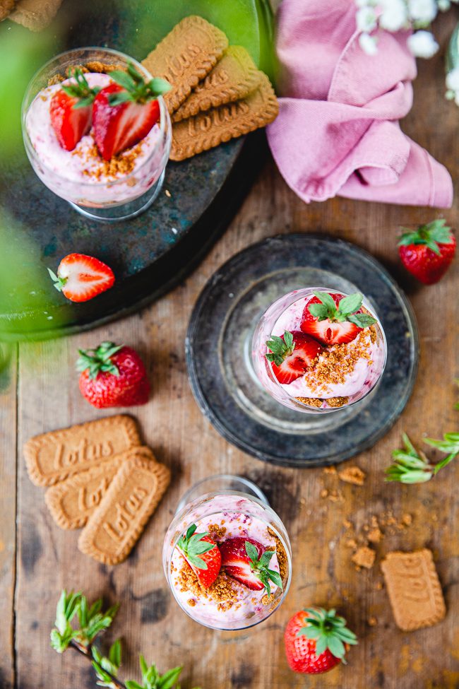 Tidigare har jag alltid gjort snabb cheesecake i glas med digestivekex. Men nu fanns det en förpackning Lotus BISCOFF hemma. De har en lite mer kolaaktig smak än digestivekex och fungerade utmärkt till detta.