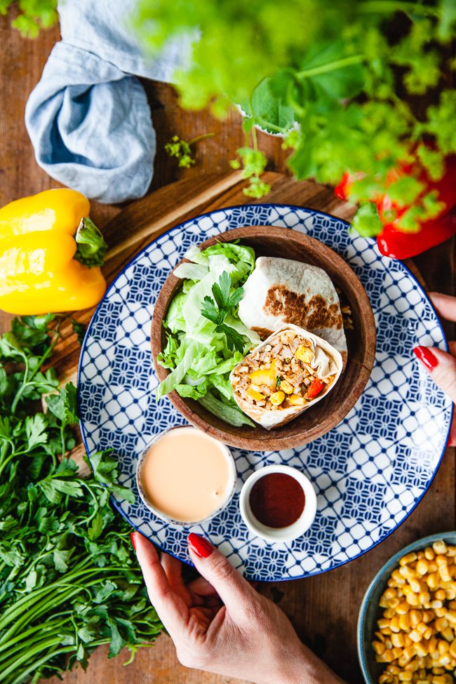 –Självklart kan du fylla på med smaker och texturer du gillar allra bäst här. Bönor, linser, lite ost, salsa- ja ta det du eller din familj gillar bäst. Det här är en enkel grund att utgå ifrån!
