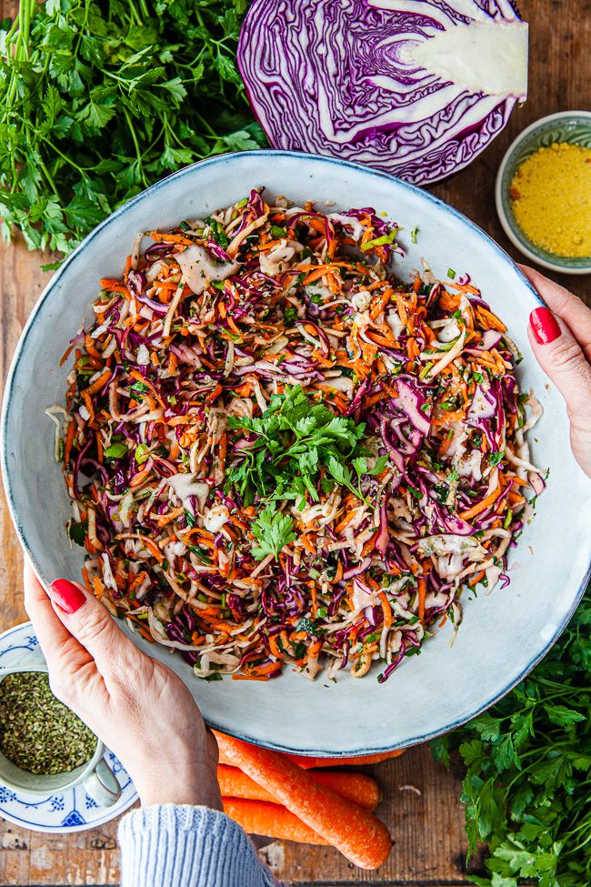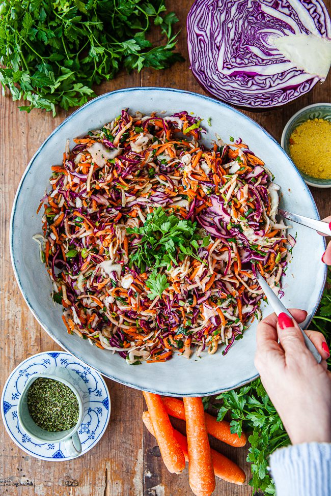 Tycker att 3 veckorssalladen blir så röd av rödkålen. Finns det nåt knep så att den inte blir så?