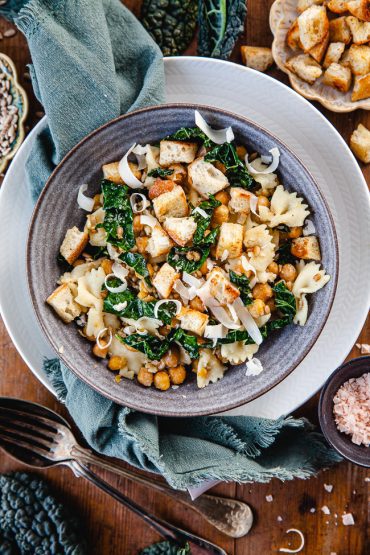 Varm pastasallad med rostade kikärtor, solroskärnor, grönkål, krutonger och parmesan. Den som säger att pastasallad passar sig bäst på sommaren har inte testat detta! Jag …